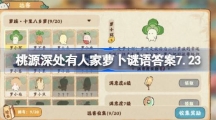 桃源深处有人家7月23日的萝卜谜语题目与花中四君子有关,下面小编为大家带来桃源深处有人家萝卜谜语答案7.23,感兴趣的小伙伴一起了解一下吧。 桃源深处有人家萝卜谜语答案